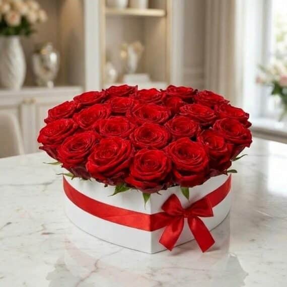 Arreglo Floral CAMILA: 24 Rosas Premium en Caja Corazón 🌹
